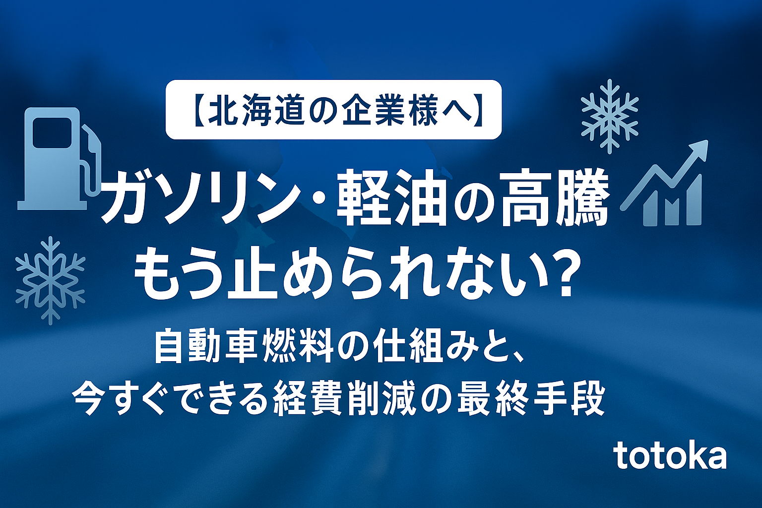 「またガソリン価格が上がったか…」 北海道で事業を営む多くの経営者様、車両管理ご担当者様が、毎日のように頭を悩ませている問題ではないでしょうか。広大な大地を走り回る営業車、人々の生活を支えるトラック、厳しい冬の現場で稼働する重機。そのすべてを動かすガソリンと軽油の価格は、企業の利益に直接的な影響を与えます。