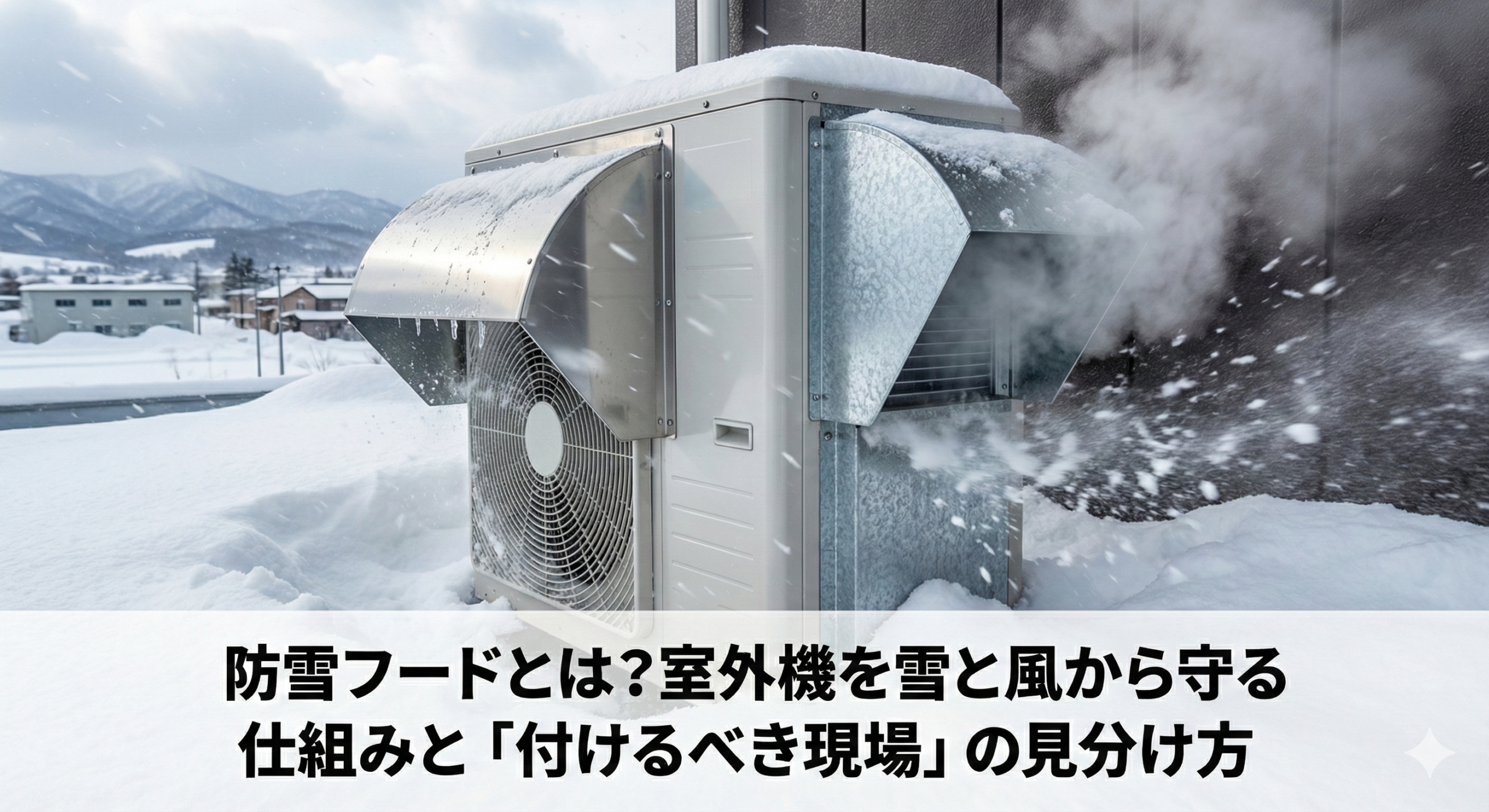 防雪フードとは?室外機を雪と風から守る仕組みと「付けるべき現場」の見分け方